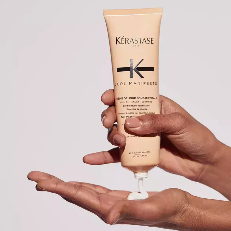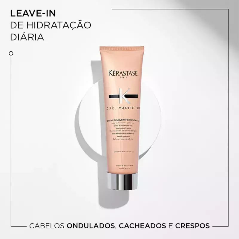 Leave-in para cabelos ondulados, cacheados e crespos. Kérastase Curl Manifesto Creme Du Jour Fondamentale confere maciez e facilidade no desembaraço.