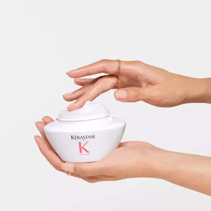Máscara para todos os tipos de cabelos danificados. Kérastase Première Filler Réparateur repara e reconstrói a força interna, além de proteger contra quebras.