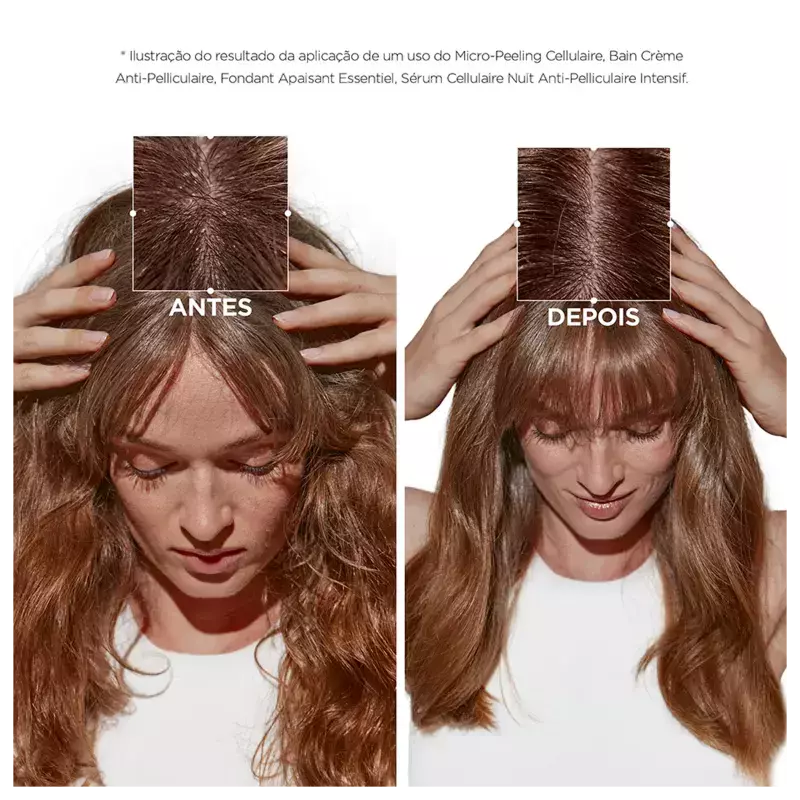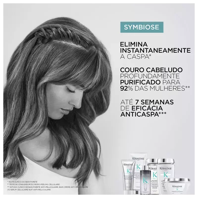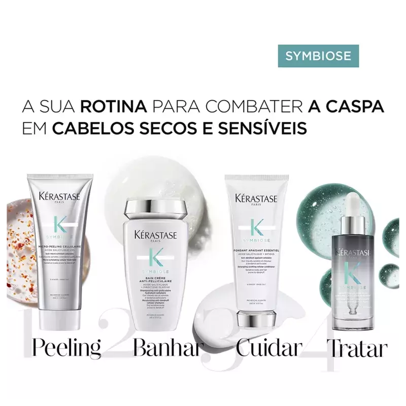 Esfoliante capilar. Kérastase Symbiose Micro-Peeling Cellulaire esfolia instantaneamente as células mortas e escamas a nível biológico e visível.